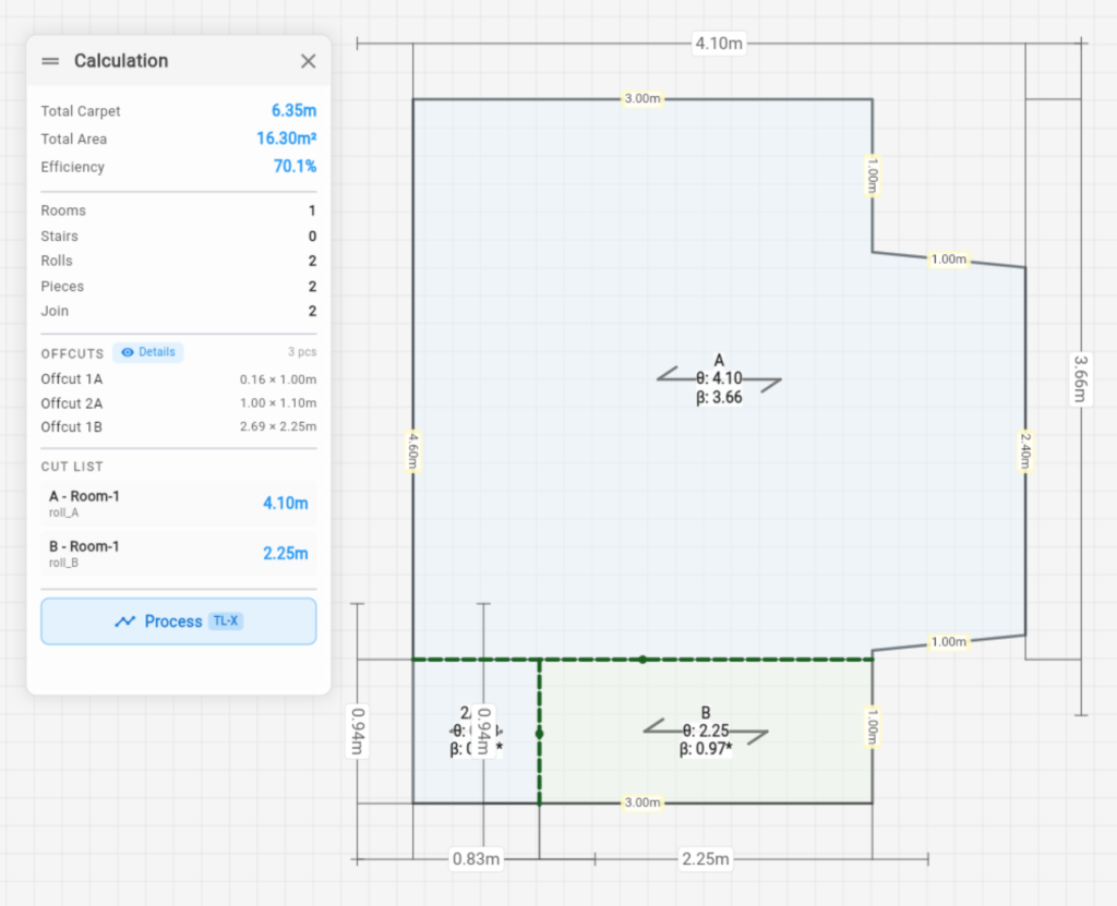 Create precise room measurements and generate optimized carpet layouts in minutes — reduce waste, save time, and install with confidence.
