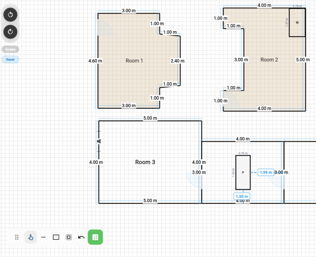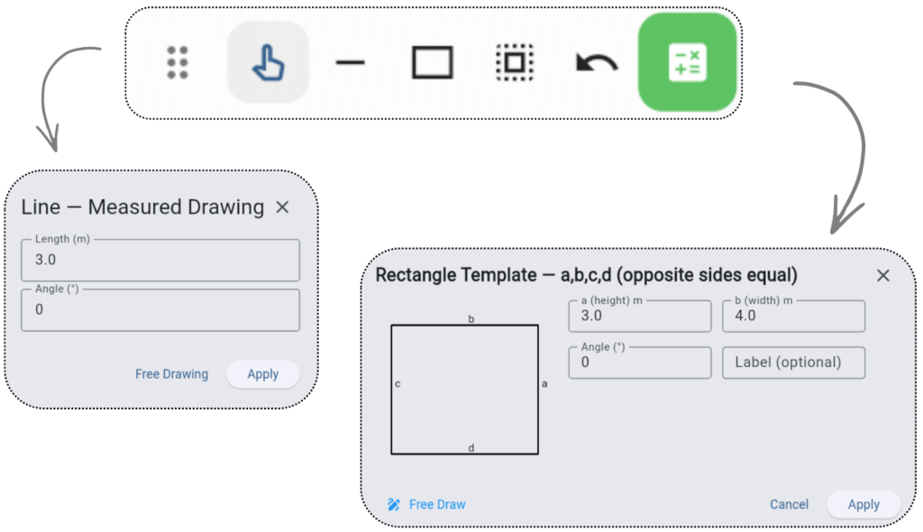 Quickly create rooms, hallways, and cupboards with ready-made layout templates.